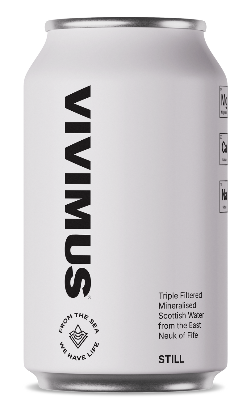 Vivimus is sourced from the AAA-Grade coastal waters of Scotland's North Sea, an ever-renewing source far from over-extracted springs that fill the bottles and cans of other water brands. It's then distilled through a proprietary technique to achieve exceptional purity.